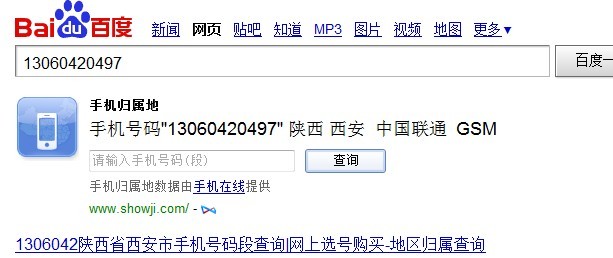 我在百度上搜索13060420497這個(gè)手機(jī)號(hào),發(fā)現(xiàn)它是西安的手機(jī)號(hào),而我是河南的,顯然是個(gè)騙子嘛。