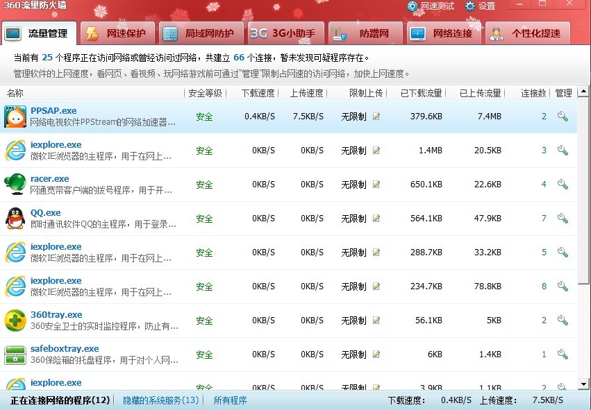 最近,我關(guān)閉PPS后,發(fā)現(xiàn)進(jìn)程項(xiàng)里沒有這個(gè)項(xiàng)目了,用360流量管理查看,也沒有什么?墒蔷W(wǎng)速卻比較慢。