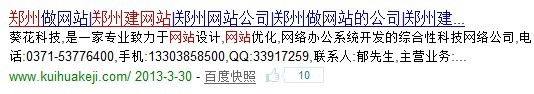 搜索結果是同一個網(wǎng)站,但是快照時間,卻一個是3月22日,一個是3月30日。