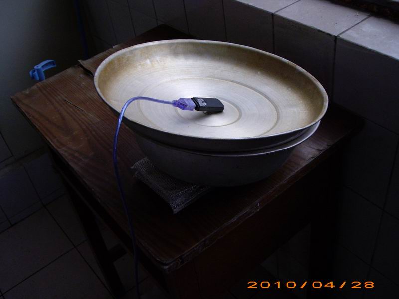 咋辦呢,總不能浪費(fèi)已經(jīng)投入的設(shè)備費(fèi)用和上網(wǎng)費(fèi)吧,想辦法解決!自己抬著筆記本,在房間各個(gè)位置試,看哪個(gè)位置信號(hào)最好,發(fā)現(xiàn)在窗戶和陽臺(tái)上的信號(hào)比較好,但總不能整天在窗戶下和陽臺(tái)上吧。于是去買了一根5米長(zhǎng)的USB延長(zhǎng)線,把上網(wǎng)卡用延長(zhǎng)線與筆記本連接起來,把網(wǎng)卡放到窗戶附近,又根據(jù)拋物線面的鋁鍋有反射聚集增強(qiáng)信號(hào)的原理,自己動(dòng)手制作了一個(gè)非常簡(jiǎn)單的信號(hào)增強(qiáng)鍋,把上網(wǎng)卡放到信號(hào)增強(qiáng)鍋的中央,一切就緒,上網(wǎng)一試——哇靠!打開網(wǎng)站速度如飛,而且信號(hào)穩(wěn)定4格左右,用迅雷下載測(cè)試一下網(wǎng)速,能穩(wěn)定達(dá)到100多K/秒,使用一段時(shí)間,再也沒有被自動(dòng)從3G切換到1X網(wǎng)絡(luò),乖乖!我成功~\(≧▽≦)/~啦啦啦!