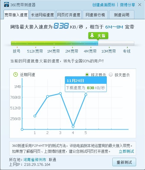 360測速軟件測試長途網(wǎng)絡(luò)速度