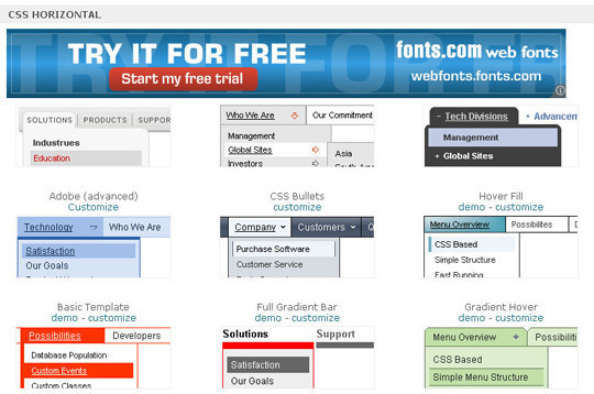 My CSS Menu 用于自定義跨瀏覽器的CSS菜單制作。