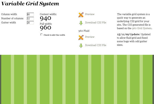 The variable grid system 是一款快速生成CSS網(wǎng)格的工具,基于 960 網(wǎng)格系統(tǒng)。