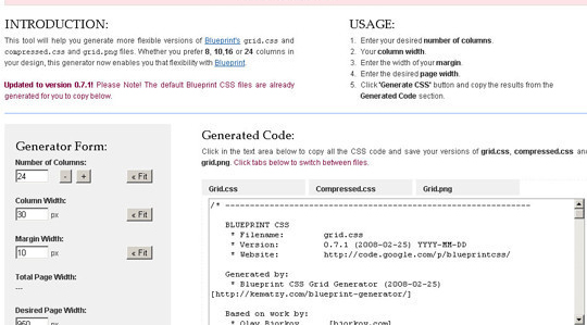 Blueprint Grid CSS Generator
