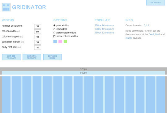 Gridinator 幫助你生成基于960.gs的網(wǎng)格布局。