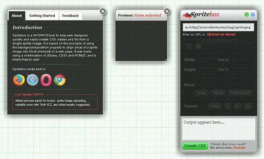 Spritebox 是一款所見即所得的工具,幫助設(shè)計師從一張 sprite image 生成CSS Classes 和 CSS IDs。