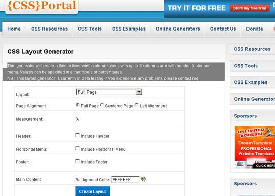 CSS Layout Generator – CSS Portal