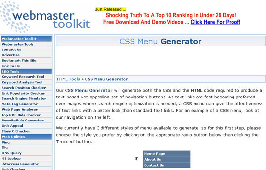 CSS Menu Generator by Webmaster Toolkit