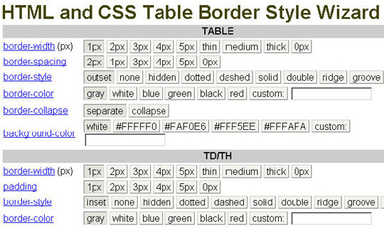 使用 CSS Table Wizard 試驗邊框樣式并生成對應(yīng)代碼。