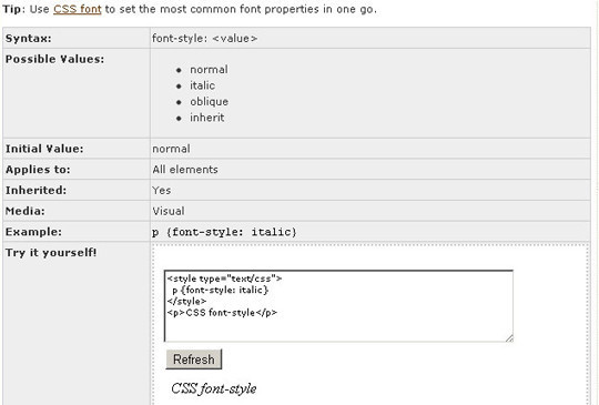 CSS font style