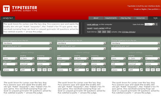 Typetester 用于在線比較字體效果。
